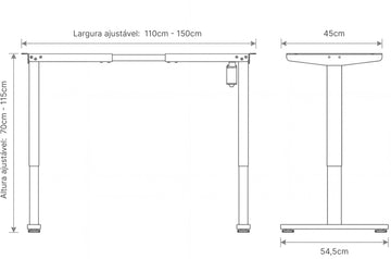 A DS2 Eco ajusta de 110 cm a 150 cm, indicada para tampos de até 170 × 60 cm.